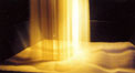 Diese Sandformen werden einfach verschluckt und unwiderbringlich aufgenommen. Andererseits kann der Sand wuchtig geschüttet werden. Aufgrund seiner Fülle formt er die erst plane Oberfläche, verwadnelt sie in einen mannigfaltige Landschaft. Und weil gerade hier sich ein Sanddstrahl herunterbewegt, erfährt der Sand seine Bearbeitung: entstehen Hügel, enstehen Mulden.