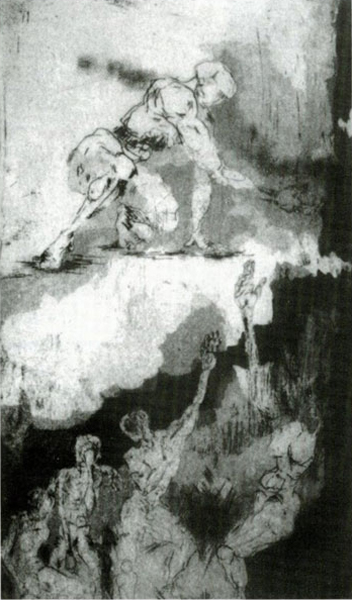 Dabei ist es ein bildnerisches Anliegen gewesen, ein dialogisches Verhältnis mit dem Text zu führen. Wir wählten die französische Form des Malerbuches, bei der die Seiten ungebunden bleiben. Durch die Antiquaschrift, wir entschieden uns für Bodoni, wird dem antiken Stoff auch in der Schriftcharakteristik Rechnung getragen. Der schlichte, ausgewogene Schnitt dieser Schrift korrespondiert mit der Radierung und hebt gleichzeitig die Eingenständigkeit von Bild und Text hervor.