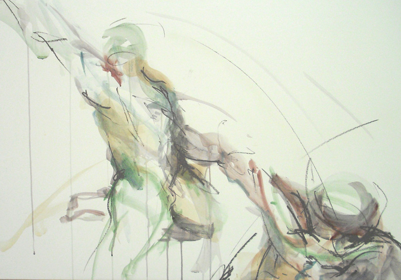 In meiner Zeichnung/ Malerei setze ich mich mit dem menschlichen Körper auseinander. Dieser steht jedoch nicht zwingend im Vordergrund, sondern der Rhythmus, den er mir vermittelt, ist entscheidend. Im ersten Schritt arbeite ich nach Modellen, nie nach Fotografien, um die Bewegung des lebendigen Körpers intensiver nachvollziehen zu können. Ausgehend von meinen eigenen Skizzen entwickle ich