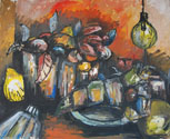 Meine Motive in diesem Zyklus sind einfache Blumenstillleben, die sich lediglich in ihrer Konstellation, Komposition und farblichen Interpretation unterscheiden. Im Prinzip habe ich immer dieselben Objekte verwendet, denn meiner Meinung nach müssen Motive nicht zwangsweise besonders anspruchsvoll oder kompliziert sein. Ich wollte zeigen, dass es keine langweiligen Motive, sondern höchstens langweilige Künstler gibt. Ich habe also einfach die Farben sprechen lassen, es einfach laufen gelassen. Diese gestische Malweise führte zu lebendigen, kontrastreichen und vor allem farbintensiven Bildern. Daraus ergab sich auch der Titel des Zyklus. Die entstandenen Stillleben wirken sehr lebendig, obwohl sie aus eigentlich toten Objekten bestehen. Ich bezeichne diese Arbeit als Zyklus, weil sie in sich geschlossen ist. Sie entstand in einer Phase zu Beginn meines Studiums, in der ich noch völlig unvoreingenommen war, und ist deshalb meiner Meinung nach in dieser Form nicht mehr reproduzierbar.