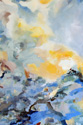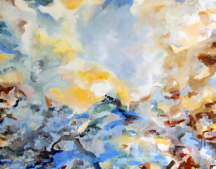 In meinen Malereien kontrastieren lasierende Flächen mit pastosen Strukturen. Zudem ist die Farbtiefe bedeutend, da es sich um „Farbräume“ handelt, die nicht ausschließlich durch ein Motiv, sondern zuallererst durch Lasuren an räumlicher Wirkung gewinnen. Alle Bilder sind in einem Querformat angelegt, da dies die Landschaft betont, mit den Maßen 150 cm x 190 cm. Dabei ist mir die Ausrichtung an der Diagonale wichtig, die durch Flächen gebrochen wird.