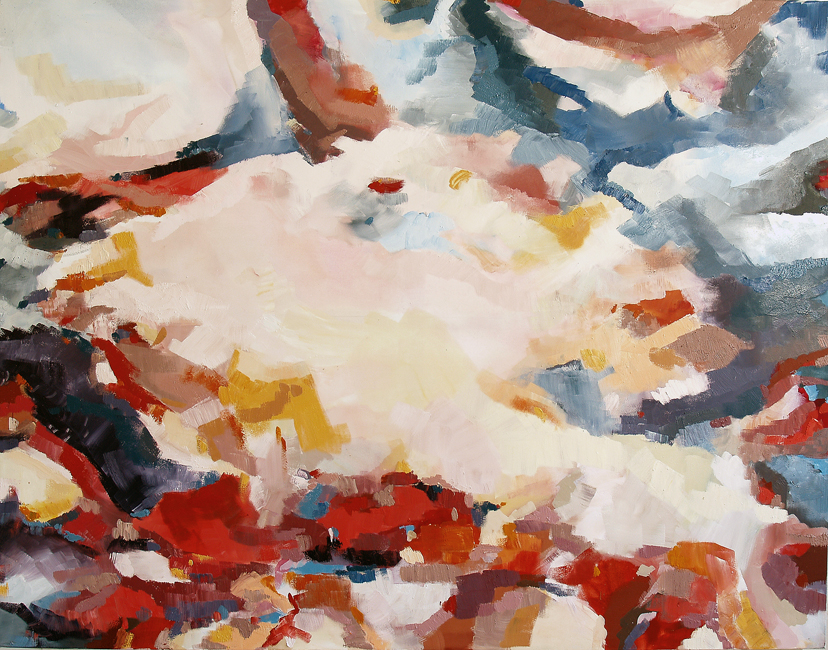 Schon seit beginn meines Studiums beschäftige ich mich in der Malerei mit dem Spannungsverhältnis von Strukturen, Flächen und Lasuren und arbeite thematisch nahe an der Landschaftsmalerei. Das Wechselspiel zwischen einem rhythmischen Aufbau von Farbflächen und Strukturen, sowie die Wirkung vom Farbklängen und Bewegung steht dabei im Mittelpunkt. Die Assoziation der Landschaft ist dabei zweitrangig und entsteht nicht nur durch die Strukturen, sondern vor allem durch den Farbaufbau innerhalb des Bildes. An diesem Aufbau wollte ich in meiner Prüfung anknüpfen und durch starke Variation der Farbwahl innerhalb einer Reihe von sieben Arbeiten, die Möglichkeiten und Grenzen dieser Landschaftsfarbräume nutzen.