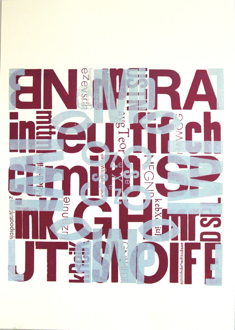 Die drei Sätze sollen sowohl für sich als Experimentelle Typografie stehen, als auch übereinander gedruckt sich ergänzen, sowie Kontraste aufweisen können.