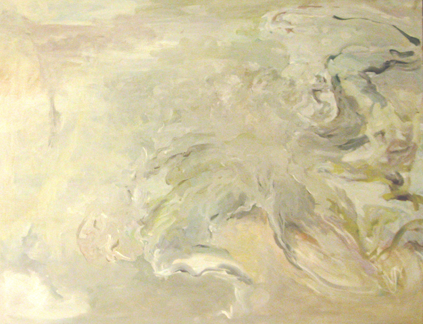 In meinen Arbeiten habe ich mich mit dem Tanz auseinandergesetzt, der durch eine Reihe der Bewegungen im Raum dargestellt wird. Das Thema des Tanzes und alle seine Darstellungsformen interessierten mich schon immer, besonders seine kultur-geschichtliche Entwicklung – vom Klassischen bis zum Modernen. Die Rolle des Körpers im Raum und die Rolle des Raumes für die Bewegung sind die Ausgangpunkte für mein Vorhaben. Die Bewegung, die sich zum Beispiel in einem Improvisationstanz ausdrückt, erinnert an eine unendliche Bewegung, wobei sich der Körper aus einer Position zu einer anderen verändert und jedes Mal eine neue Figur entsteht. Durch wechselhafte, langsame Bewegungsabläufe verschmilzt der Körper mit dem Raum, löst sich auf, verschwindet und taucht wieder auf. Für mich hat dieser Prozess eine meditative Wirkung. Deswegen habe ich auch die helleren Töne gewählt, die sich aus dem Weiß herausbilden.