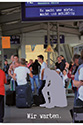Die Reihe „Warten“ zeigt verschiedenen Menschen am Bahnhof. Manche lesen Zeitung, hören Musik, halten Ausschau nach dem Zug oder beobachten andere. Einige nehmen das Warten gelassen und nutzen die Zeit, andere rutschen tief in ihren Sitz und langweilen sich. Die körperliche Haltung möchte ich herausstellen. Ich färbte die Menschen auf den Fotografien mit einer besonderen Geste in Grau, so dass diese zwischen den anderen etwas herausstechen. Dennoch sind sie eine Person zwischen vielen anderen, die ebenfalls warten. Damit die grau gefärbten Figuren dem Betrachter mehr auffallen, bearbeitete ich den Hintergrund in Photoshop verschwommen. So ist die Graue Figur mit den harten Kanten mehr im Mittelpunkt.