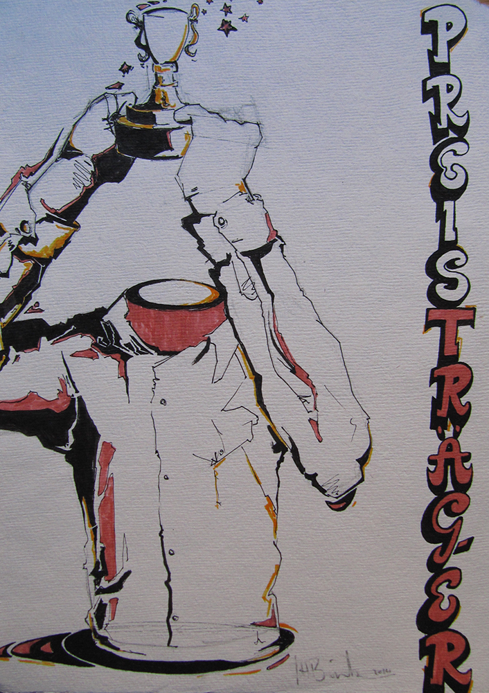 Marionetten am seidenen Faden – Jeder stolziert auf seiner eigenen Bühne auf und ab. Im grellen Licht der Zeit scheint Vergangenes unaufhaltsam zu verbleichen – Doch jeder schwimmt im eigenen biographischen Meer, ist determiniert durch die Vergangenheit der Vorfahren, die Lehre der Wissenschaft. Die Banalitäten des Alltags degradieren Individuen zu Zuschauern, Karikaturen im unaufhaltsamen Strudel der Zeit. Die Handzeichnungen greifen diese Aspekte auf und veranschaulichen eben diesen Moment vor dem großen Knall.