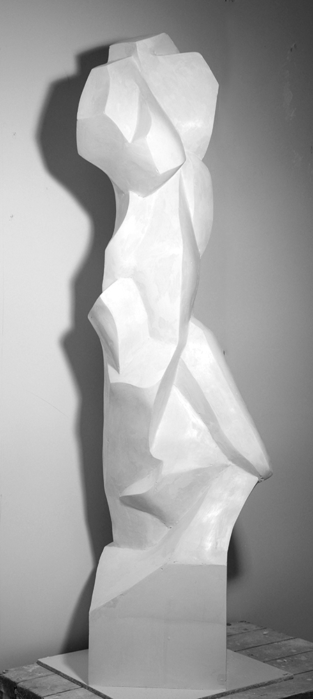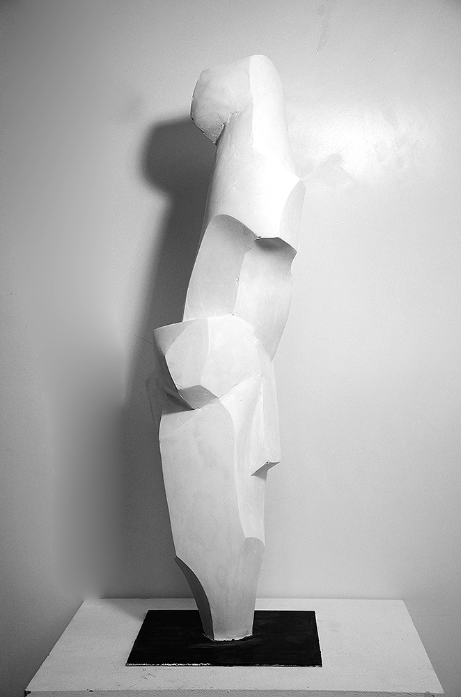 in die Höhe winden, erinnern nur noch entfernt an ihren tatsächlichen Ursprung. Im Grunde sind die einzelnen Elemente der Säulen den im letzten Jahr entstandenen experimentellen Arbeiten zum weiblichen Torso entnommen und bilden hier in einem neuen Kontext eine vollkommen abstrakte Arbeit, die tatsächlich nur noch mit den gefundenen Formen spielt und sie nach rein ästhetischen Maßstäben zu einem neuen Ganzen zusammensetzt.
