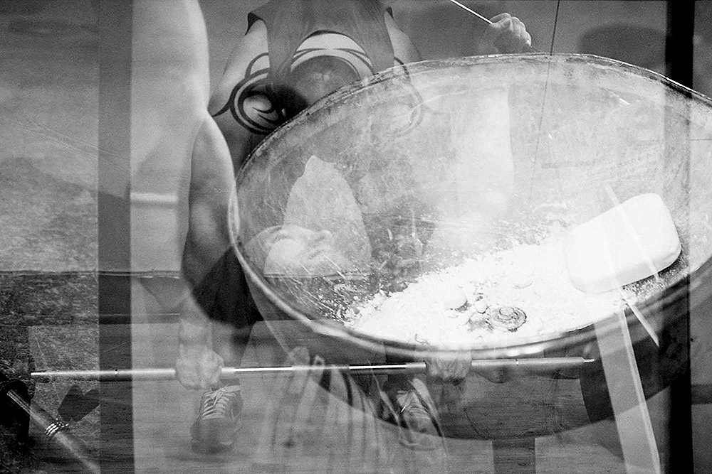 Inspiriert durch die Sportbegeisterung meines Freundes entstanden die ersten Bilder vor meinem inneren Auge, als ich ihn zum ersten Mal zum Training begleitet habe. Für mich war sofort klar, dass ich dies auf Schwarz/Weiß Photographien festhalten wollte. Ihn, die unterschiedlichen Trainingssequenzen und die Räumlichkeit. Die Kombination von Stahl, Holz und dem menschlichen Körper sollte auf den Bildern vereint werden.
