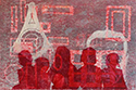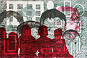 Es sind insgesamt 12 Platten in unterschiedlichen Größen entstanden. Gedruckt wurde in Farbe. Es sollte ein Experiment werden. Durch die großen Gesichter hatten nicht alle für sich alleine Platz, so dass Überschneidungen vorprogrammiert waren. Durch diese Überschneidungen und Überlappungen wirken die Bilder zum Teil dreidimensional. Wurde beispielsweise Transparentweiß hinzugefügt, scheinen vorherige Drucke unter den Neuen durch. So entstanden neue Farben und Konstellationen. Ich konnte nicht zu 100 % beeinflussen, welche Teile des Gesichtes gerade durch ein anderes bedeckt wurden. So sind zahlreiche Unikate entstanden.