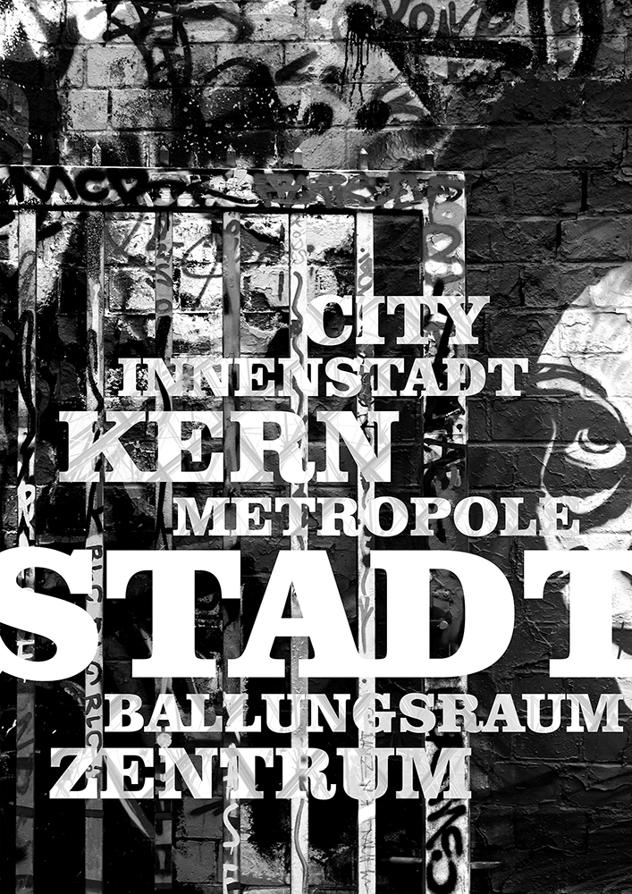 Diese Plakatreihe beinhaltet eine Kombination aus typographischen und fotografischen Elementen, welche die Thematik Stadt und Land darstellt sowie mögliche Differenzen aufzeigen soll.