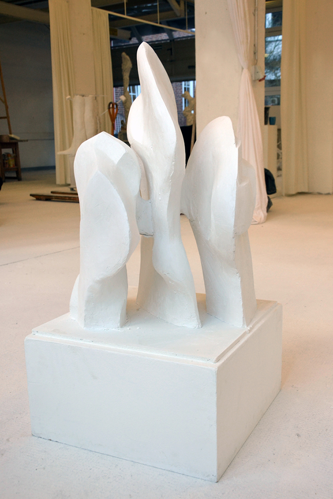 Das Thema „Interskulpturale Dynamik“ beschäftigt sich mit dem spannungsvollen Zusammenwirken von Volumen und Oberflächen verbundener Skulpturen. Insbesondere organische Skulpturen verfügen allein durch ihre natürliche bzw. naturähnliche Ausformung über ein „Eigenleben" und eine eigene Dynamik. Ziel dieser künstlerischen Reihe ist es, diese inhärenten Grundbewegungen durch Verbindungen in einer spannungsvollen Interaktion zu kombinieren und hierbei dynamische Formationen im Raum zu erproben.