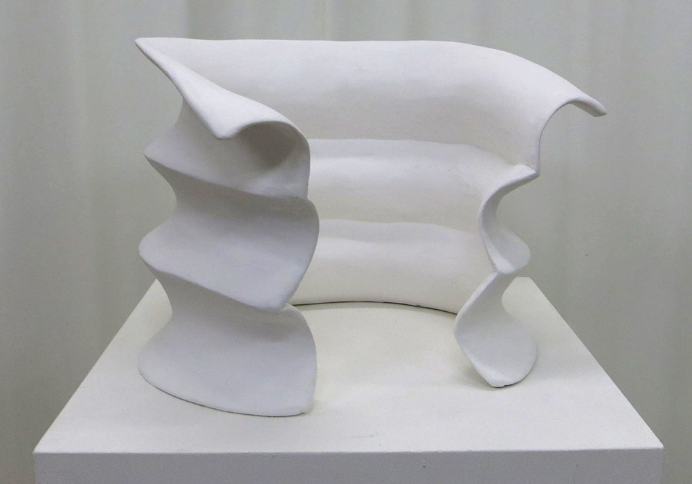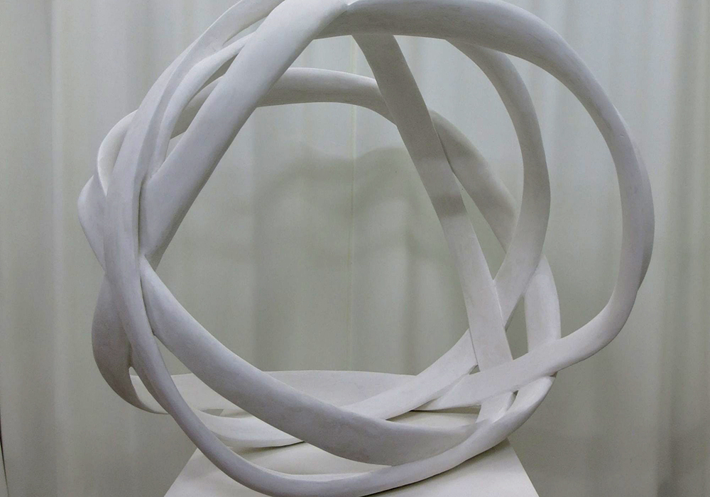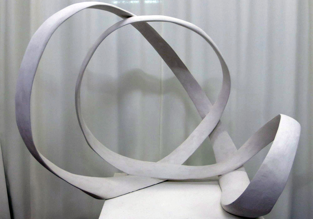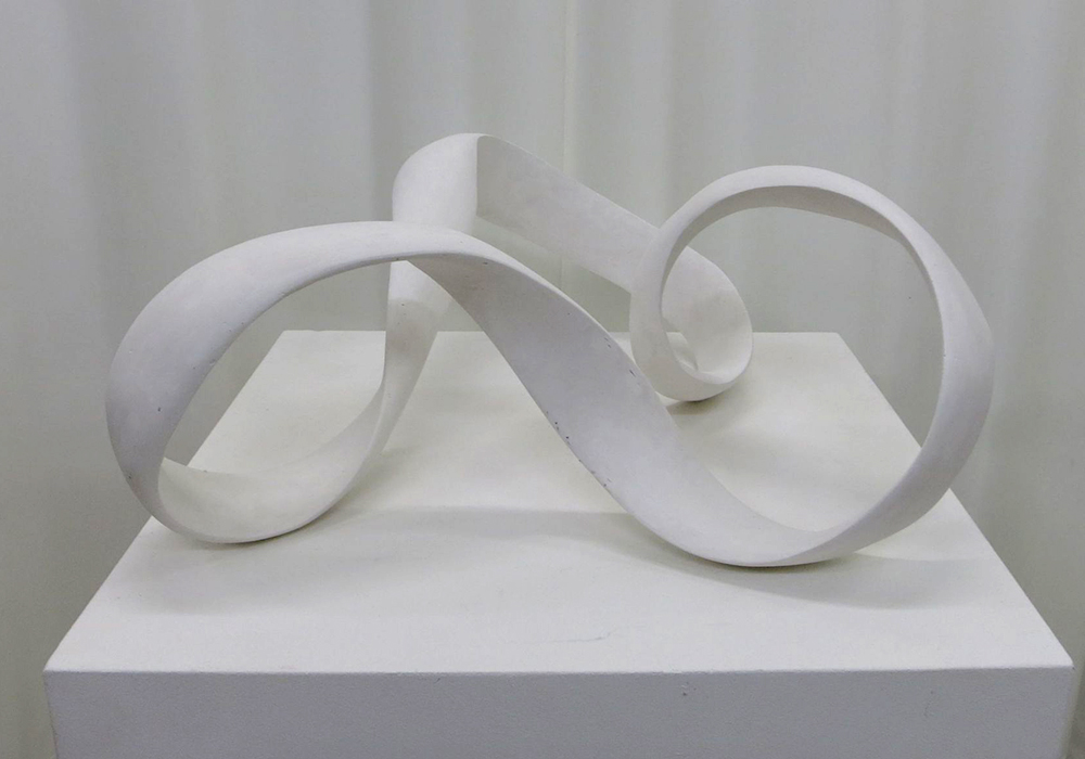Abstrakte Skulptur, Gips/Metallgeflecht, geschlossenes Band mit 3-fach wechselnder Innen- und Außenfläche
