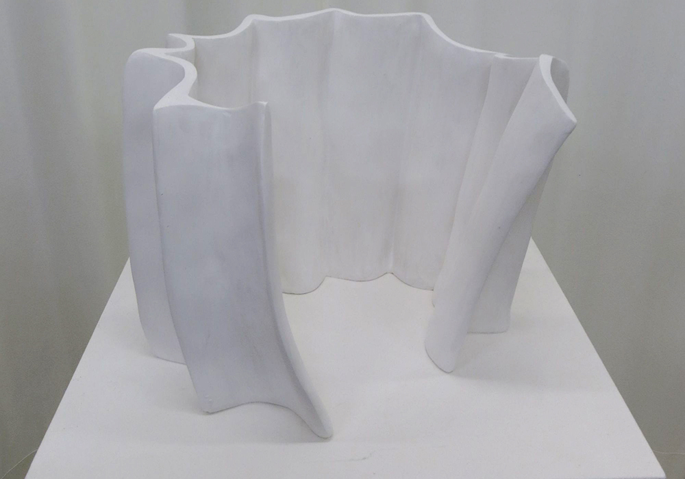 Abstrakte Skulptur, Gips/Metallgeflecht, 3-fach Band in geöffneter Form mit scharfer Kantung