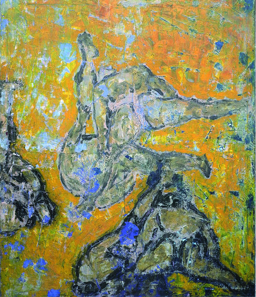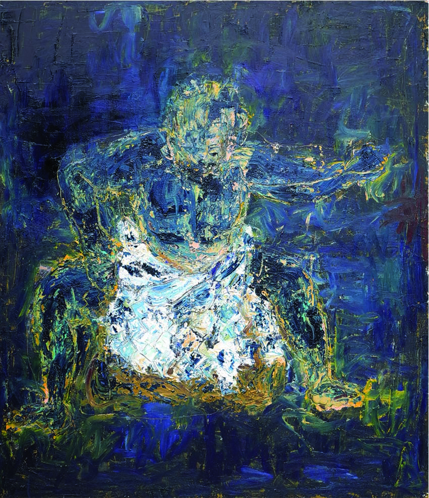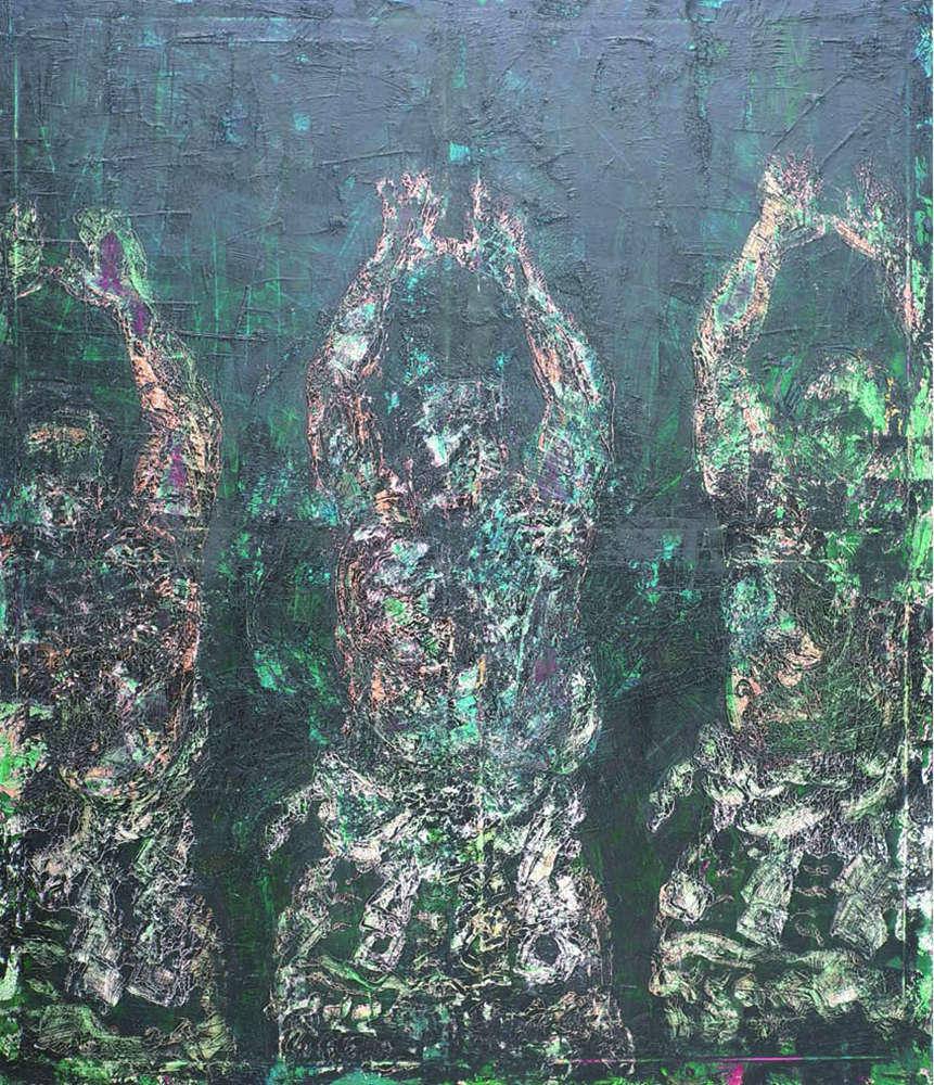 Die körperliche Masse der Sumatori erscheint als dominierende Fläche im Bild, angelegt in einer Art Durchsichtigkeit und nicht als undurchdringliche Farbfläche – erzeugt durch das Abspachteln der zuvor pastos aufgetragenen Ölfarbe. So werden Farbschichten, Farbfragmente, filigrane Strukturen und Texturen, die zuvor bei der Gestaltung des Untergundes angelegt wurden, freigelegt. Das verleiht der Massigkeit der Sumatori die Leichtigkeit, über die sie durch eine disziplinierte Gymnastizierung ihres Körpers tatsächlich verfügen; es hebt das statische Moment ihrer Haltung, z. T. durch starke Konturierung gekennzeichnet, auf; und es lässt die Kultsprache ihrer Körper stärker hervortreten.