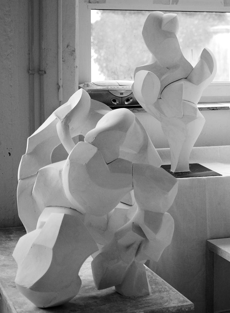 Alle Arbeiten weisen hierbei auch in sich eine Prozesshaftigkeit auf; die Formsprache erfährt zum Teil während des Arbeitsprozesses von Element zu Element eine Veränderung. Ermöglicht wird dieser Einfluss der verstreichenden Zeit auf die formale Umsetzung durch ein Prinzip, dass all meinen künstlerischen Arbeiten zu Grunde liegt – das spontane, intuitive Arbeiten ohne vorbereitende Skizzen und Planungen. Jedes skulpturale Element bedingt notwendig das nächste, ein Teil folgt auf das andere, die bildhauerische Arbeit konzentriert sich in einem ständigen Schauen und Reagieren. Das Modellieren wird zu einem freien Spiel mit Formen und Linien, das allein den Regeln der ästhetischen Wahrnehmung folgt.