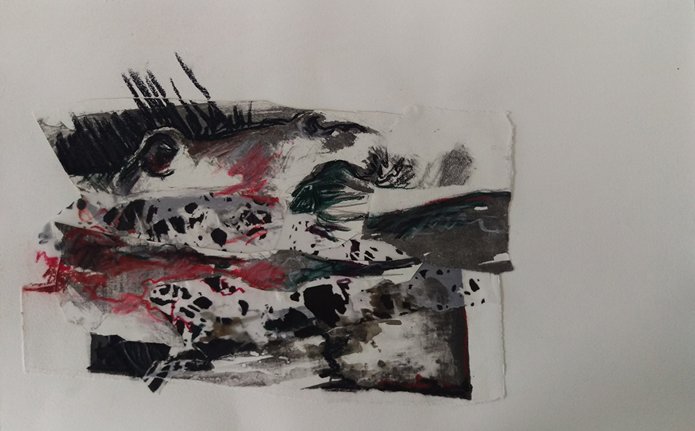 des Dichters wird durch die Umsetzung durch eine Collage wiedergespiegelt
